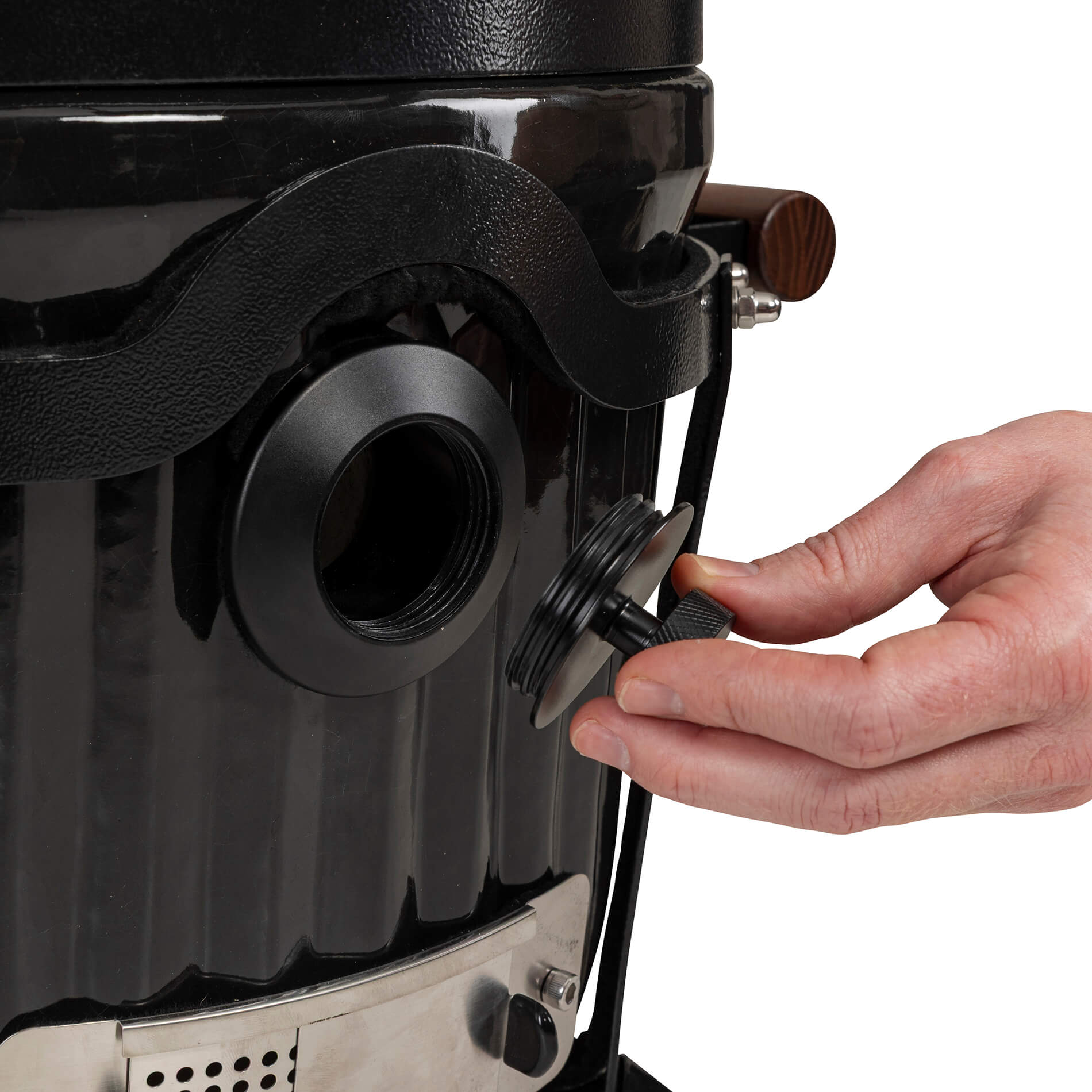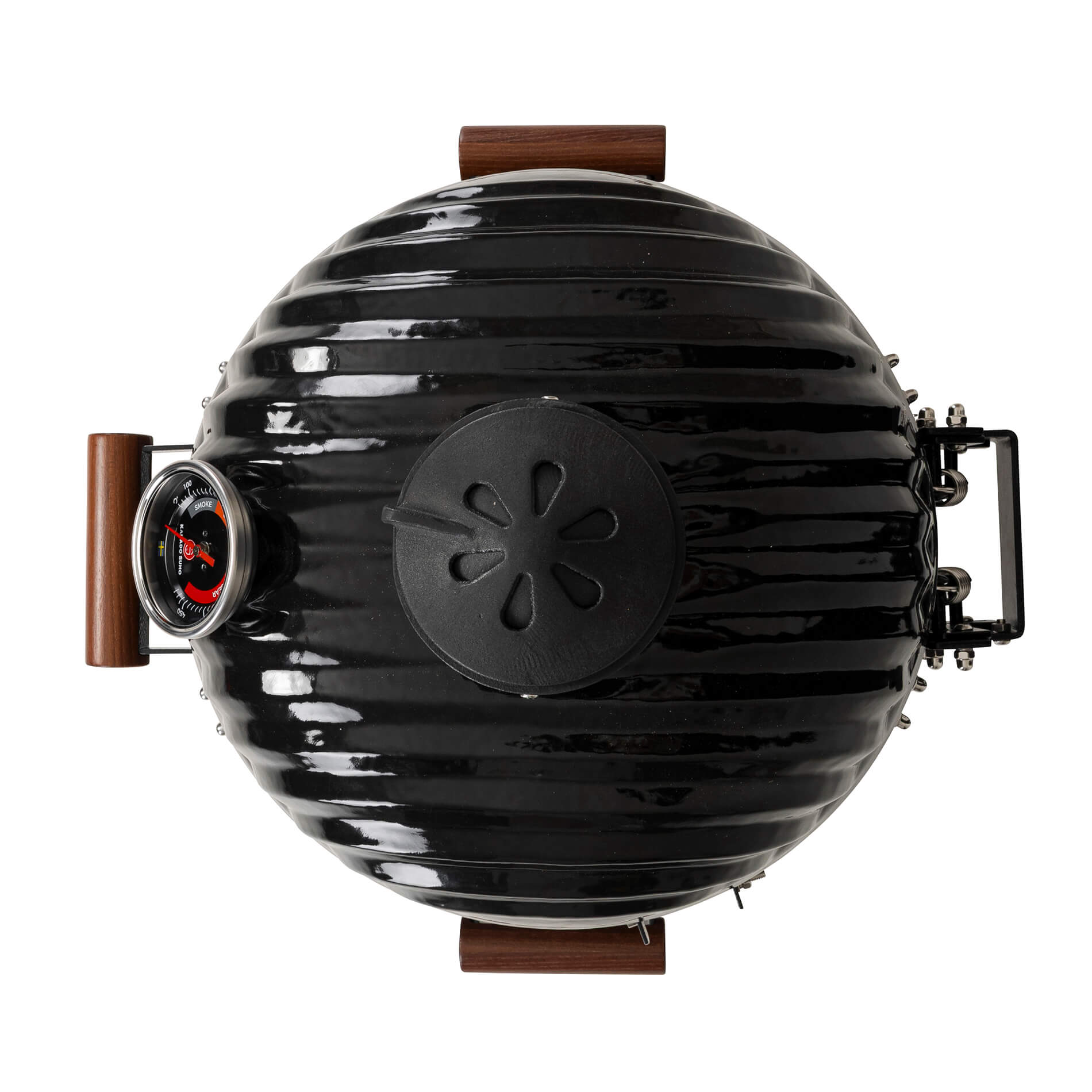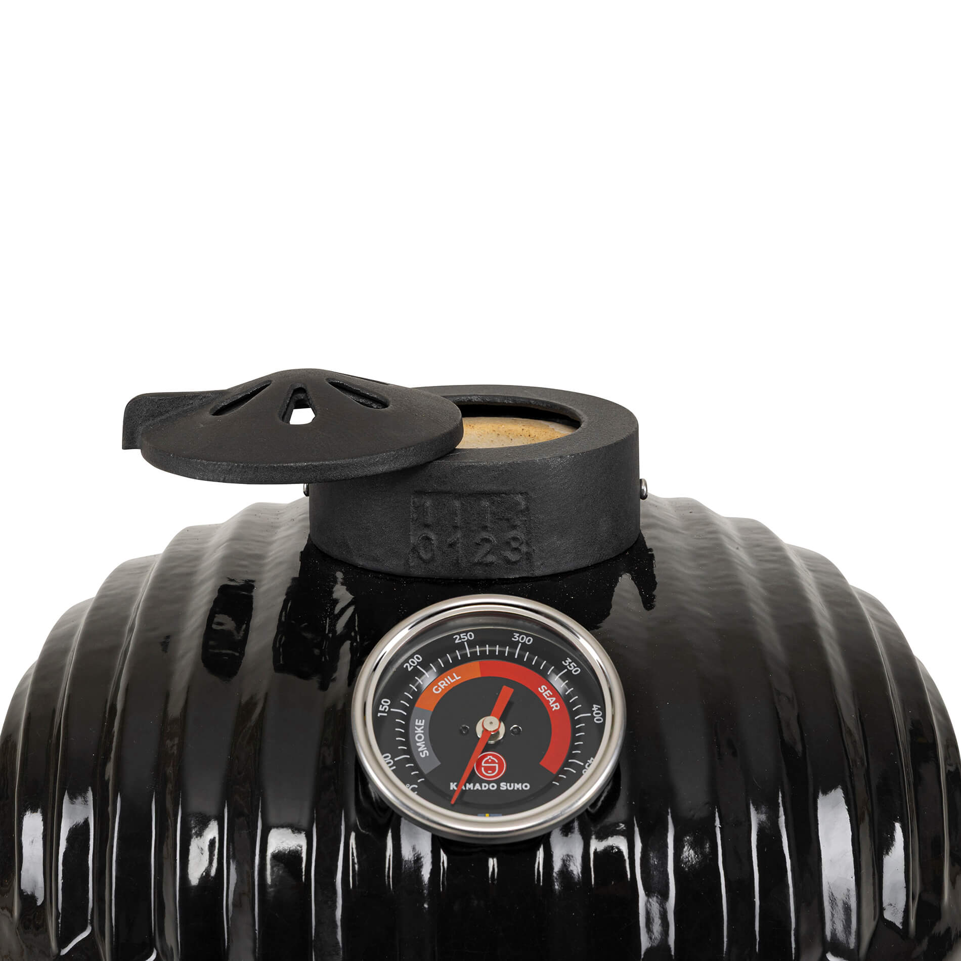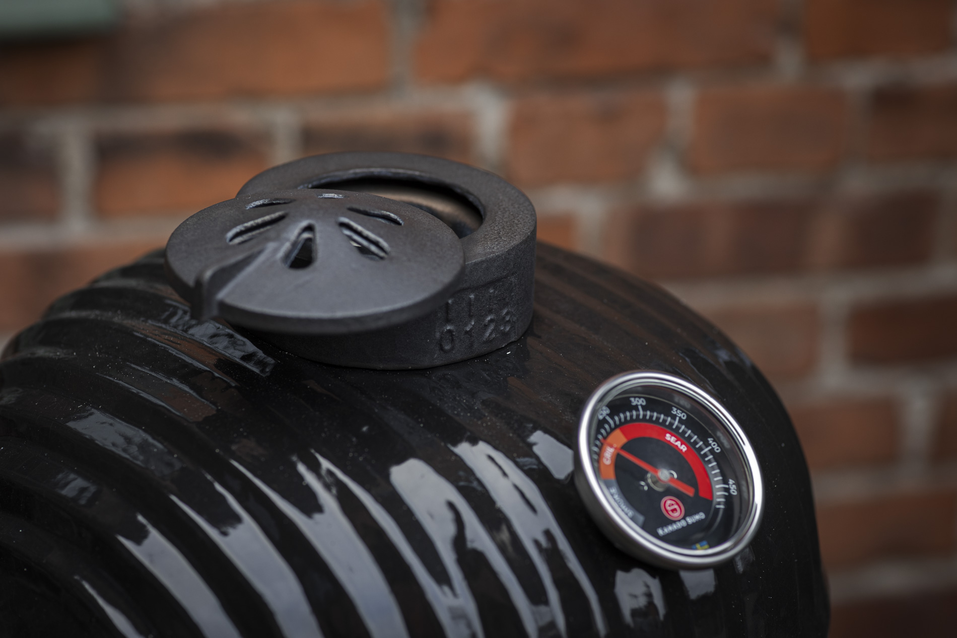 Toppventilen i gjutjärn är designad för att kunna få ett optimerat luftflöde för förbättrad temperaturkontroll. Den innovativa designen ger obegränsade möjligheter där hela toppen kan öppnas upp för maximalt luftflöde för de riktigt höga temperaturerna. Samtidigt kombinerar den eleganta designen möjligheten till precisionsinställning av luftflödet på mycket noggrann nivå för att reglerera temperaturen till exakt önskade nivåer vid rökning och low-and-slow.