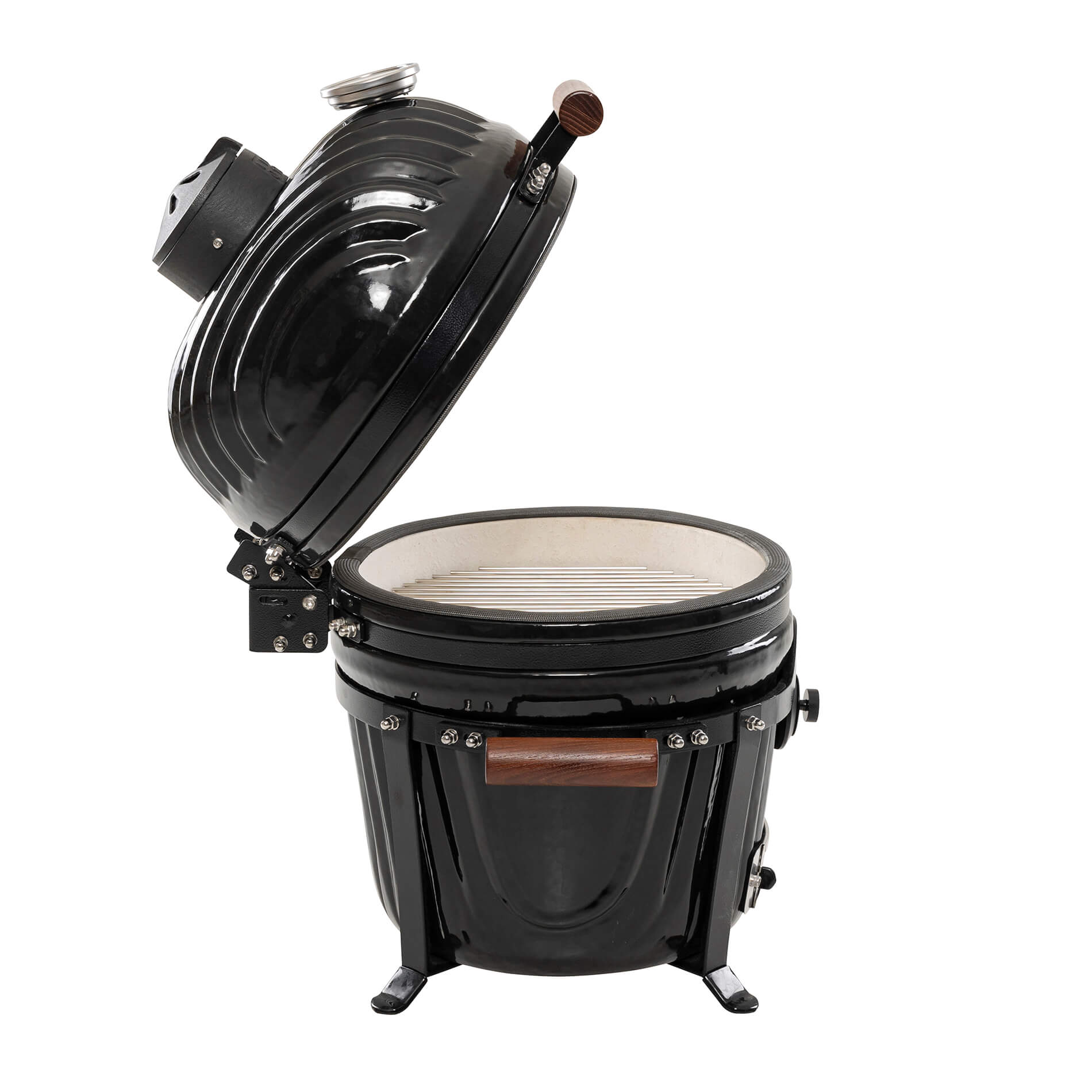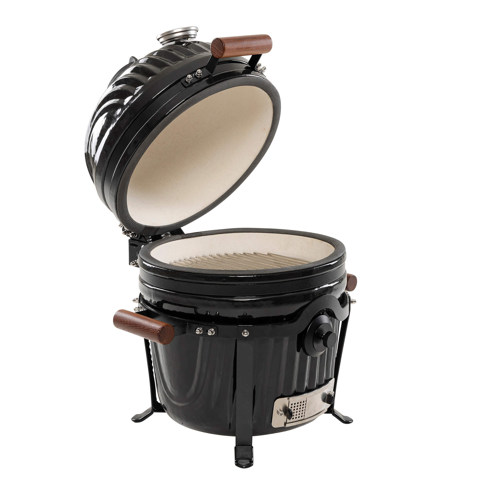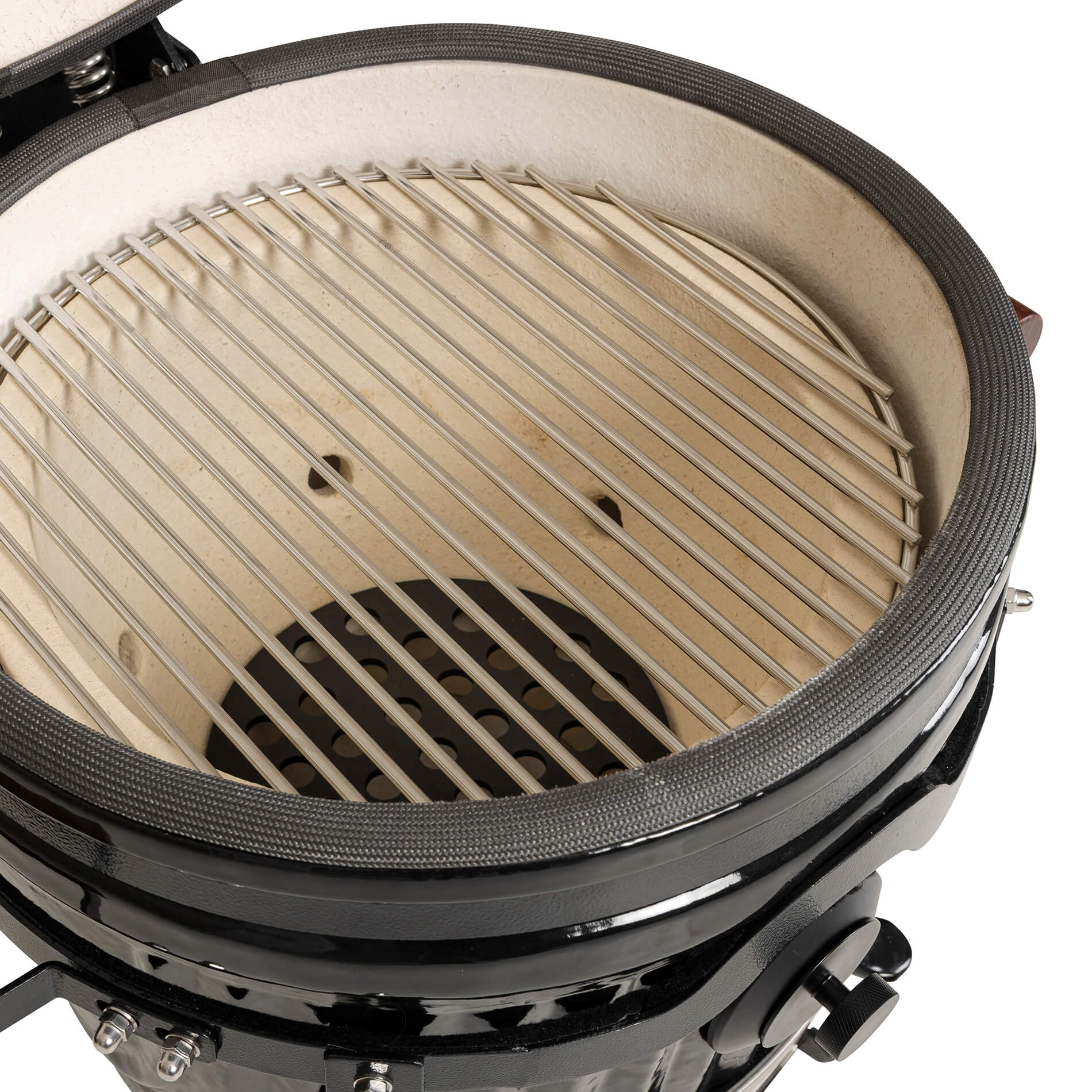 The solid ceramic lid on the Icon requires a design that matches its weight and precision. The sturdy hinges, featuring two strong springs, provide perfectly balanced opening and closing, making the lid easy to handle despite its weight. The design keeps the lid stable in all positions and ensures a tight seal throughout the cooking process. A robust and well-thought-out solution that combines function, durability, and a design language that blends seamlessly with the grill’s iconic aesthetic.
