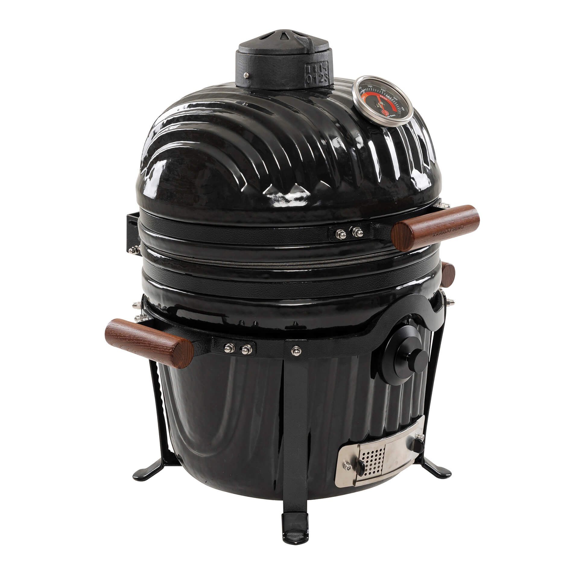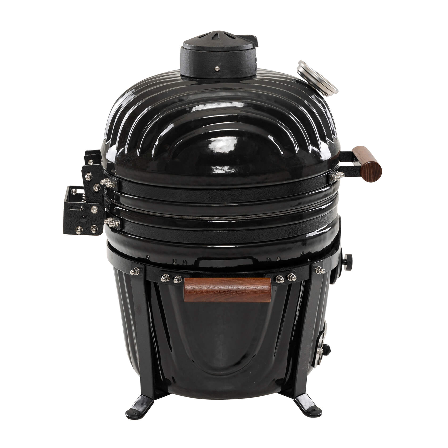 The stainless steel top valve is designed to get optimized airflow for improved temperature control. The innovative design provides unlimited possibilities where the entire top can be opened up for maximum airflow when used for really high temperatures. At the same time, the elegant design combines the possibility of precision setting the airflow at a very accurate level to control the temperature to the exactly desired levels when smoking and for low-and-slow.