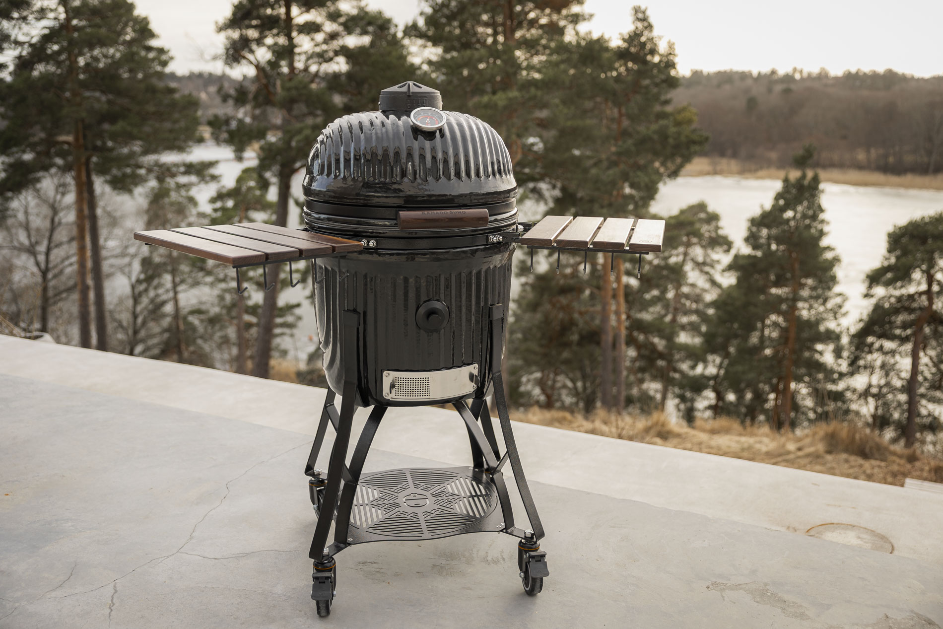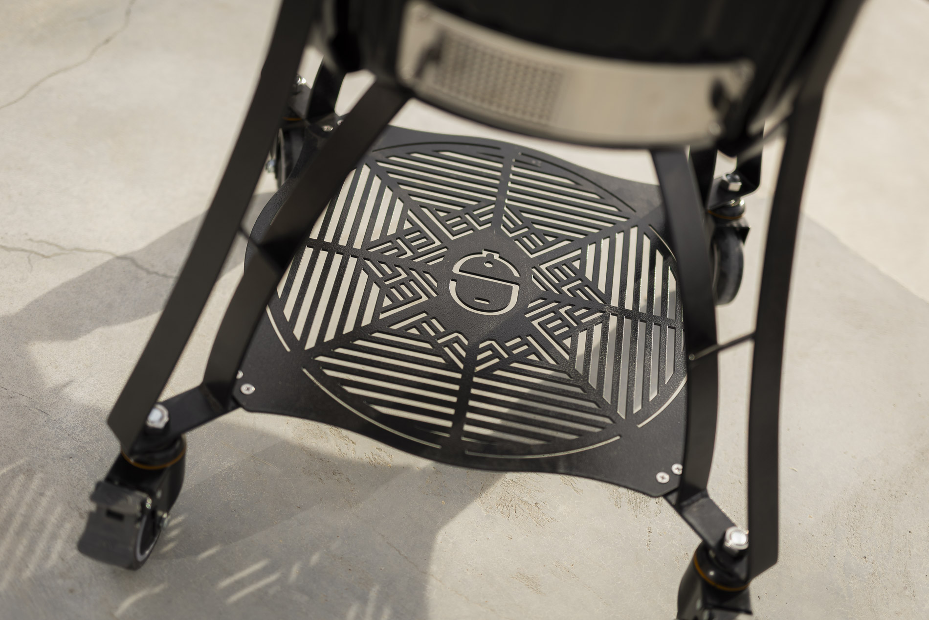 Icon is built with a stand that follows the grill’s contours and enhances its iconic design. The smooth curves and thoughtful design create a cohesive and exclusive look where every part feels like a natural extension of the grill. The integrated base plate provides convenient storage for grill grates and deflector plates, always close at hand when you need to switch between different cooking methods. The sturdy stand is designed to support the grill’s weight and ensure a secure, stable position throughout use. At the same time, it is equipped with smooth-rolling wheels that make it easy to move the grill when needed.