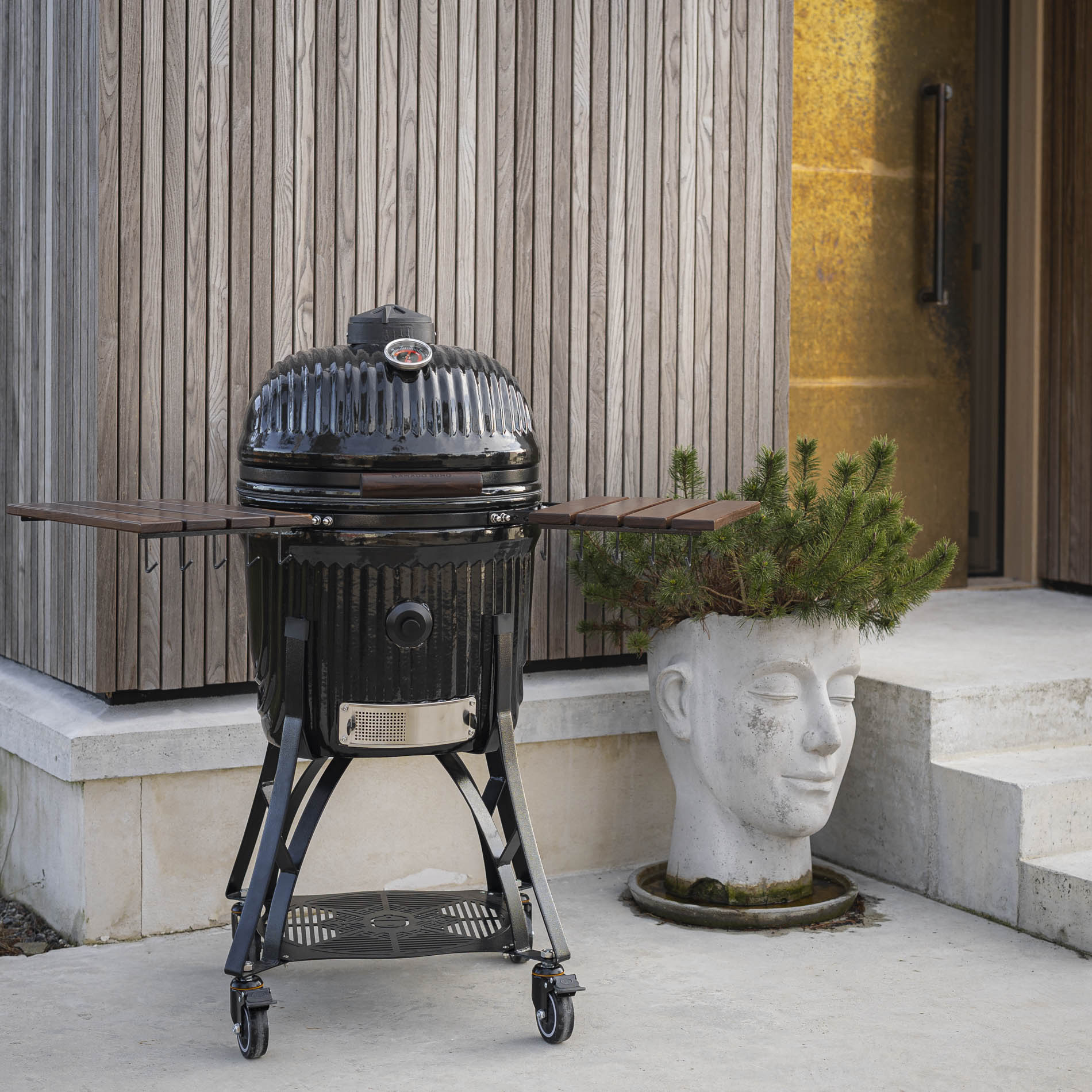 The Icon Large is designed to deliver a perfect balance of power, control, and style. With its iconic design, clean lines, and a stand that complements the grill’s aesthetic, it becomes the natural focal point of any outdoor setting—as striking visually as it is in performance.