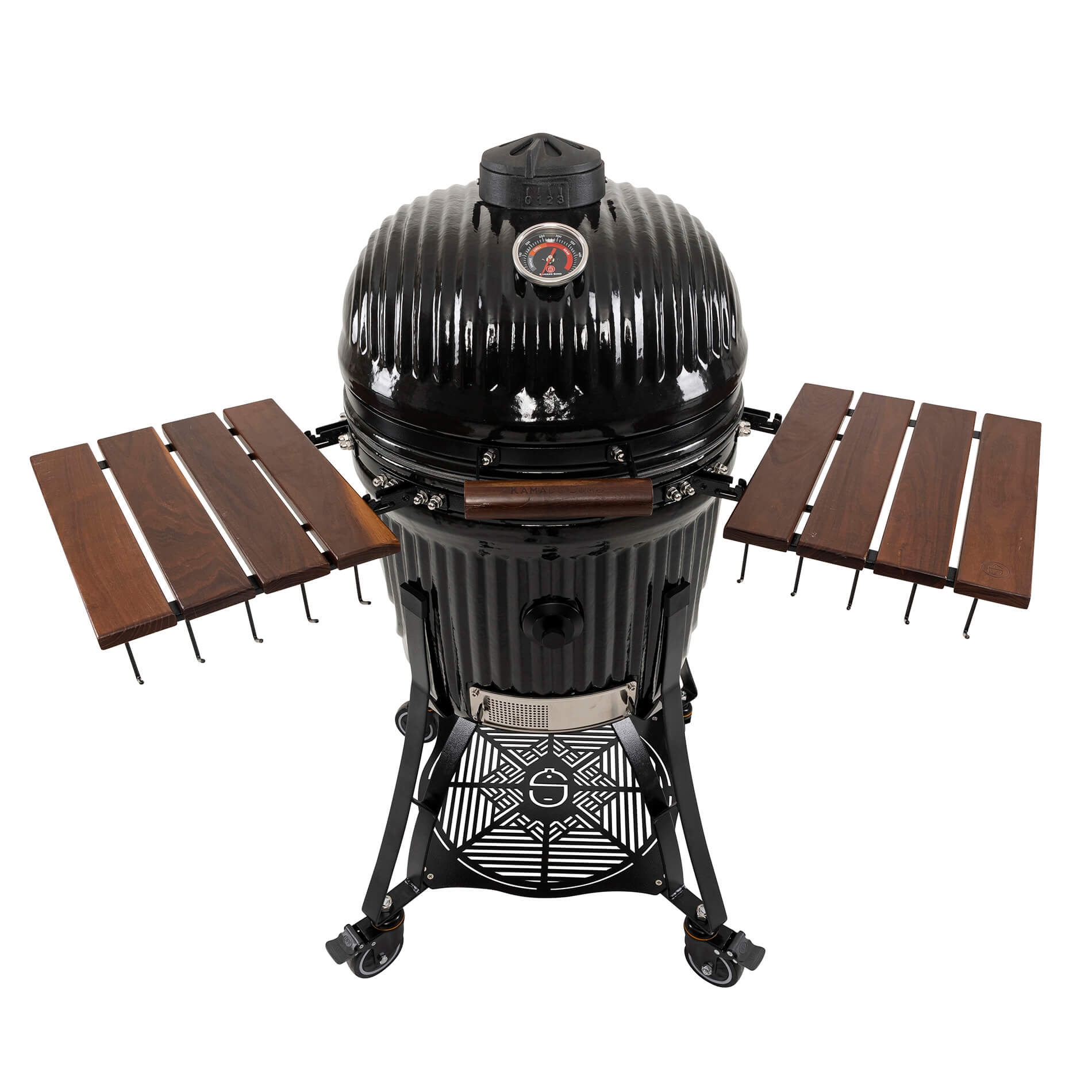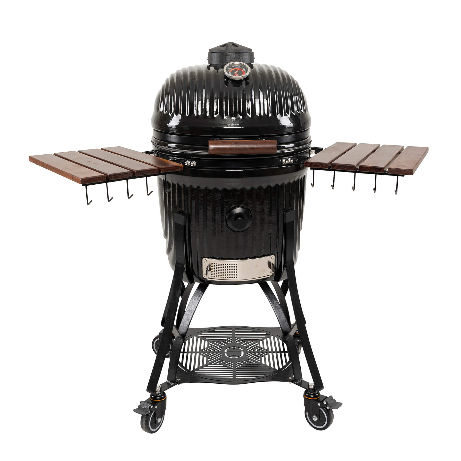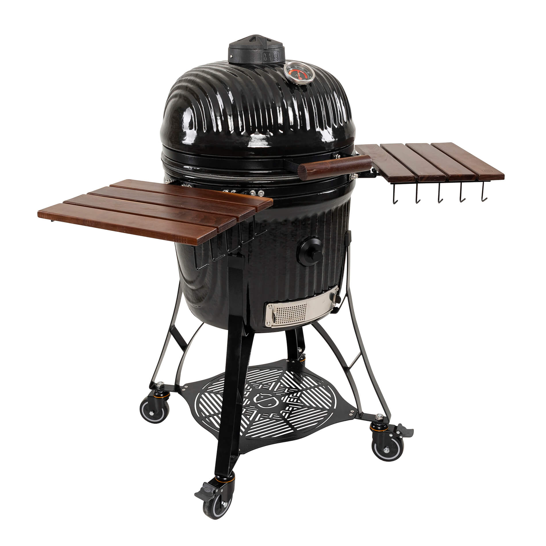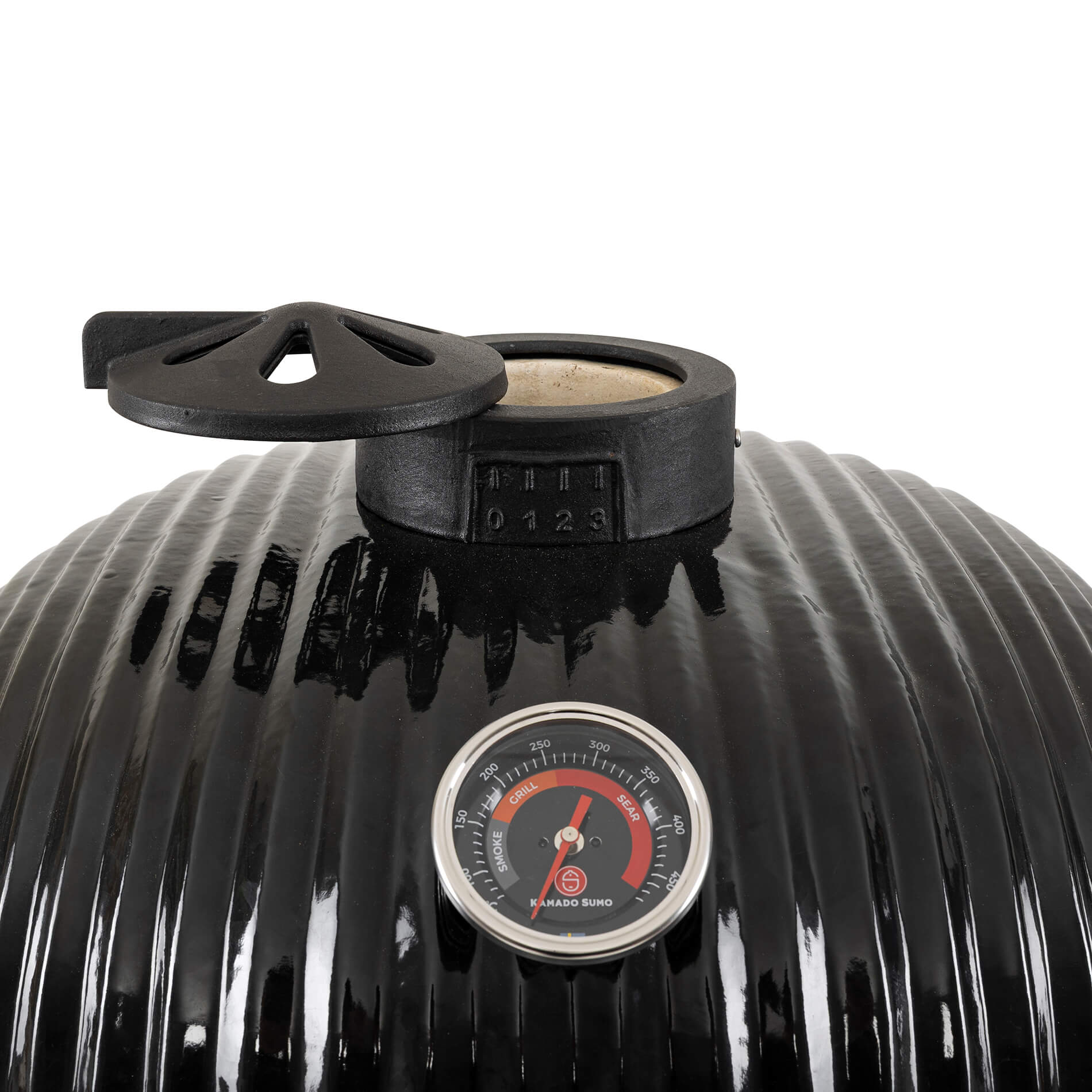 Toppventilen i gjutjärn är designad för att kunna få ett optimerat luftflöde för förbättrad temperaturkontroll. Den innovativa designen ger obegränsade möjligheter där hela toppen kan öppnas upp för maximalt luftflöde för de riktigt höga temperaturerna. Samtidigt kombinerar den eleganta designen möjligheten till precisionsinställning av luftflödet på mycket noggrann nivå för att reglerera temperaturen till exakt önskade nivåer vid rökning och low-and-slow.