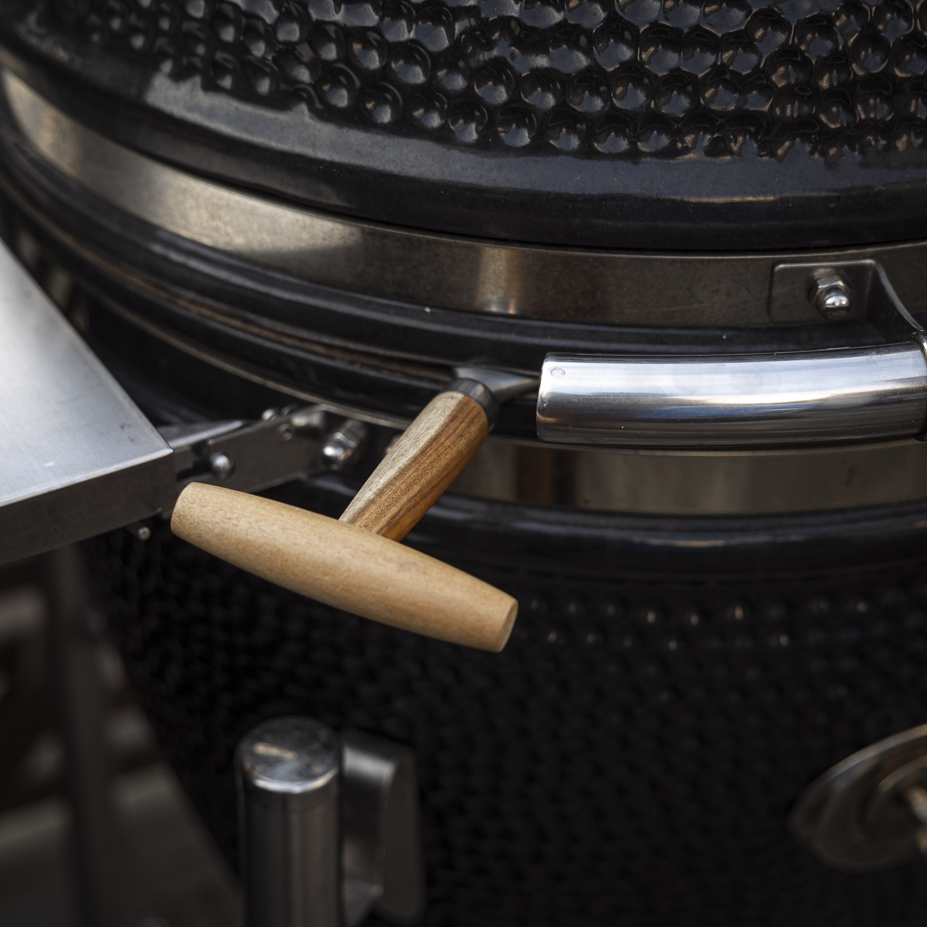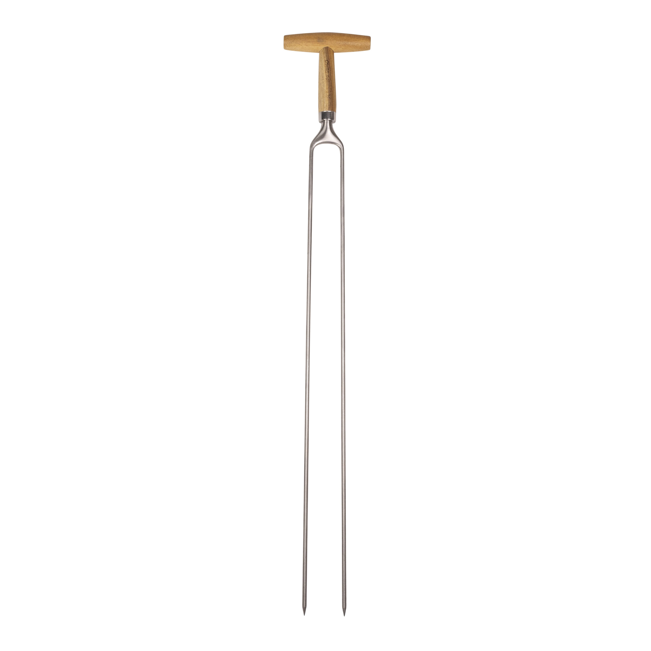 Asado, från Argentina, och churrasco, från Brasilien, representerar två av de mest älskade grilltraditionerna i Sydamerika. Vårt spett, med två vassa stänger i rostfritt stål och en imponerande längd på 67 cm, rymmer otroligt mycket mat och ger dig full kontroll över varje vändning på grillen. Designade för att passa din Kamado Sumo, kan du enkelt lägga dem över grillen och stänga locket för perfekt tillagning. Med handtag i slitstarkt akaciaträ, inspirerade av klassiska högafflar, får du både ett bra grepp och en elegant touch till din grillning.